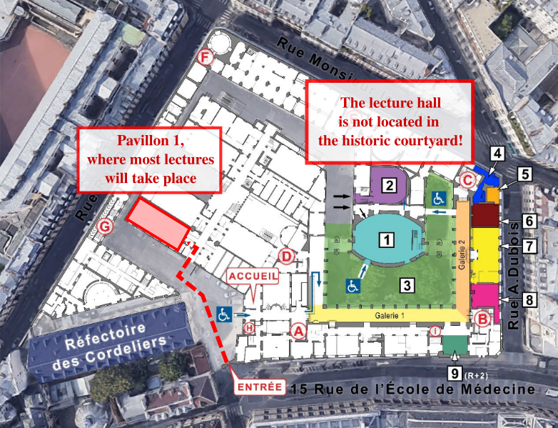 of the Cordeliers campus of the Faculté de Médecine, 15 rue de l'École de Médecine (Odéon on Metro line 4, Saint-Michel on the RER B line).